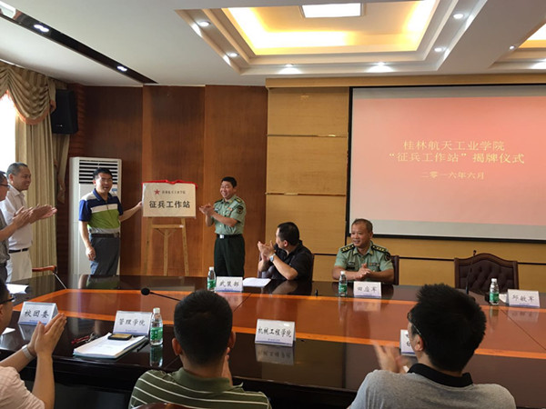 6月20日上午,桂林市警备区参谋长邱敏军、七星区人武部政委田应军、桂林市警备区参谋陆正杰等莅临best365官网并出席best365官网“征兵工作站”揭牌仪式。