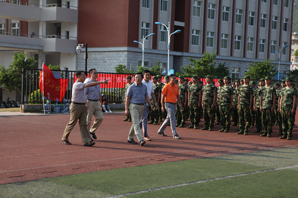 10月10日下午,副院长詹皖生到军训现场检查指导军训工作,并慰问了承训教官和参训同学。