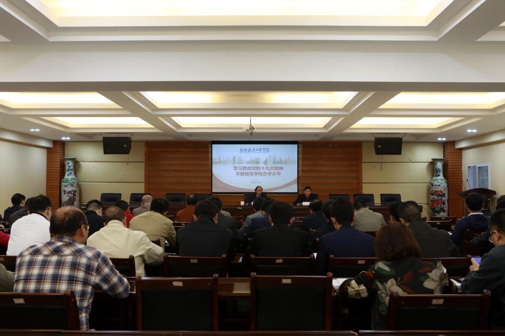 4月16日上午,校长易忠在飞天楼520会议室为全体中层干部作题为《学习贯彻党的十九大精神,不断提高学校办学水平》的专题辅导报告。报告会由党委副书记罗延忠主持。易忠简要介绍了十九大报告的主题、十三个方面的...