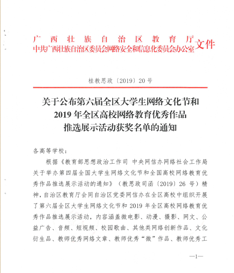 2020-01【喜报】best365官网师生在第六届全区大学生网络文化节及2019年全区...