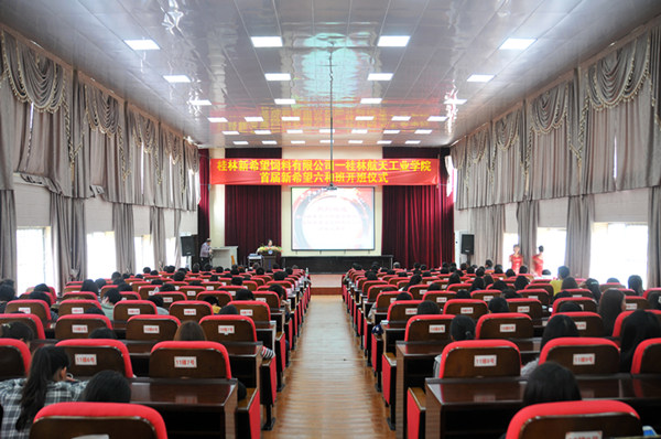 3月18日下午,由工商管理系承办的桂林新希望饲料有限公司--best365手机版官方网站首届“新希望六和班”在电教馆举行了开班仪式。