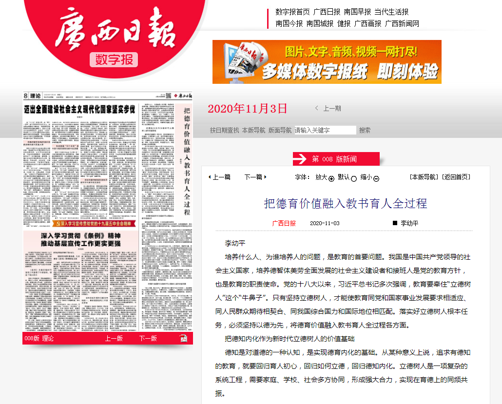 2020-11【广西日报】把德育价值融入教书育人全过程