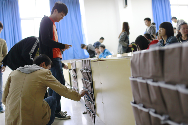 上课前,同学们关闭手机或者把手机调至震动状态,自觉把它放进设在教室前排的收纳袋里,下课后再取回。