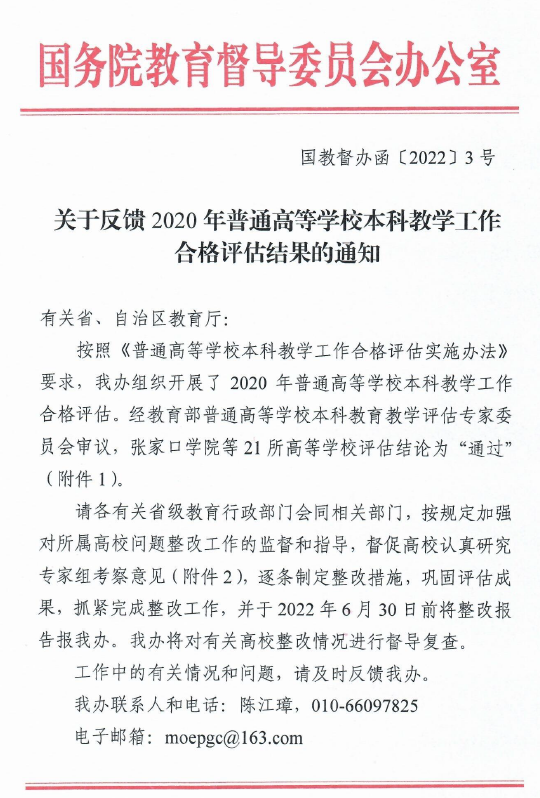近日,国务院教育督导委员会办公室下发了《关于反馈2020年普通高等学校本科教学工作合格评估结果的通知》(国教督办函[2022]3号),正式公布了评估结果为“通过”的高校名单,best365官网顺利通过了2020年教育部本科教...