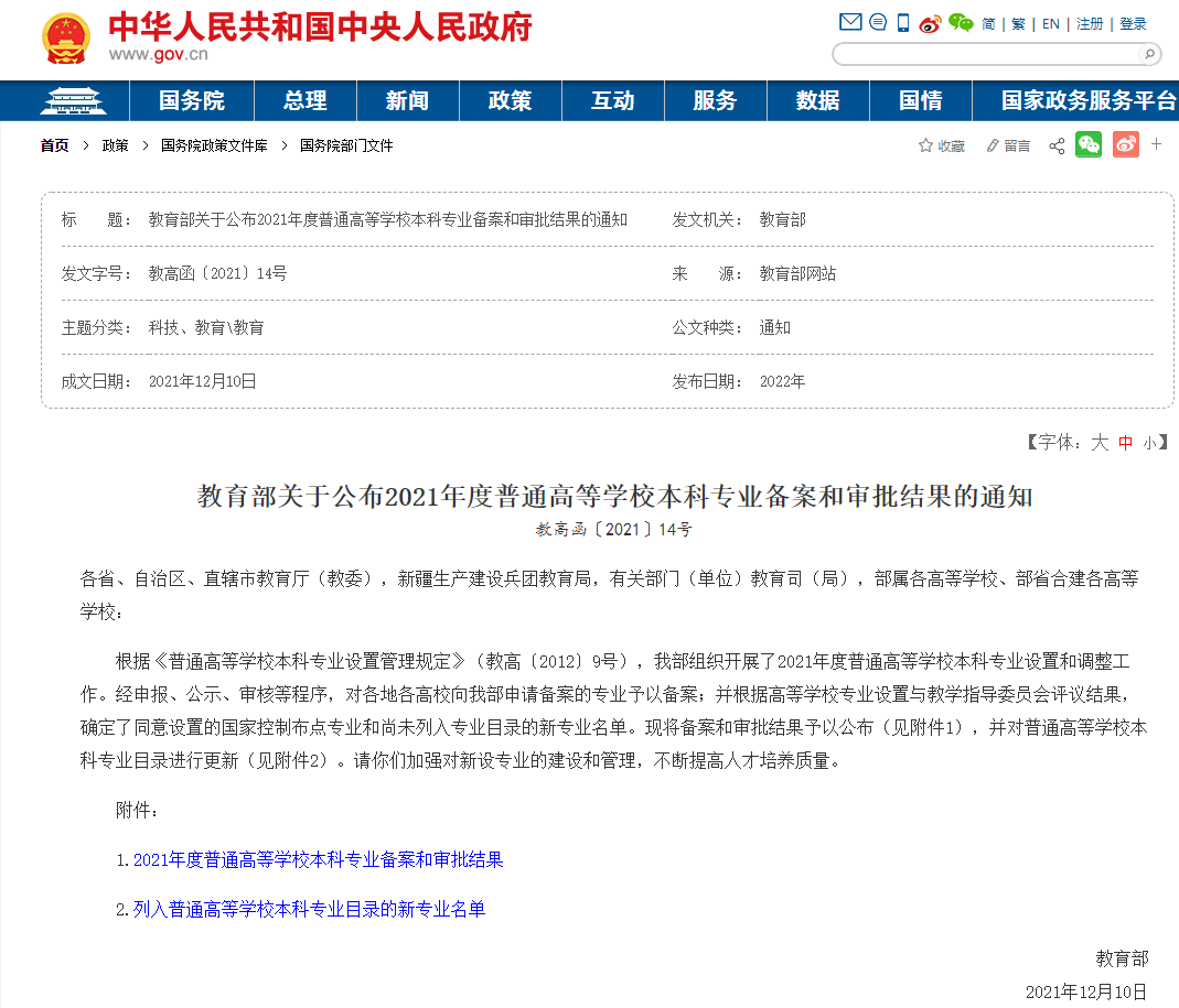 近日,《教育部关于公布2021年度普通高等学校本科专业备案和审批结果的通知》(教高函〔2021〕14号)公布了2021年度普通高等学校本科专业备案和审批结果。best365官网2021年申报的智能制造工程(专业代码:080213T)、安...