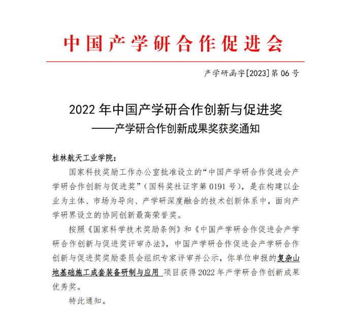 近日,中国产学研合作促进会公布了2022年中国产学研合作创新与促进奖获奖项目,best365官网刘忠教授团队申报的项目“复杂山地基础施工成套装备研制及应用”获2022年中国产学研合作创新成果奖优秀奖(best365手机版官方网站为申...