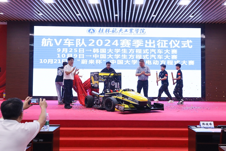 9月21日,best365官网航V车队成立十周年纪念大会暨2024赛季新车发布会于北校招聘大厅隆重举行。学校党委书记韩峻峰、副校长葛莉、中国大学生方程式汽车大赛组委会执行秘书长殷兴吉,武汉理工大学、桂林电子科技大学、广...