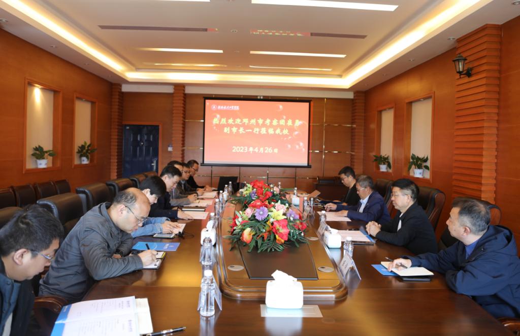 2023-04河南省邓州市副市长崔勇一行来校调研交流