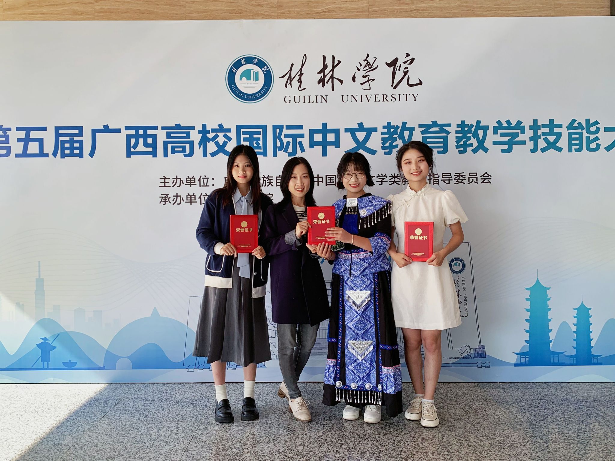 11月16日至17日,第五届广西高校国际中文教育教学技能大赛在广西桂林桂山华西酒店隆重举行。best365官网外语外贸学院汉语国际教育专业许诺妍获得比赛二等奖,龚瑞雅、林瑾玭获得三等奖。本次大赛由广西本科高校中国语言...