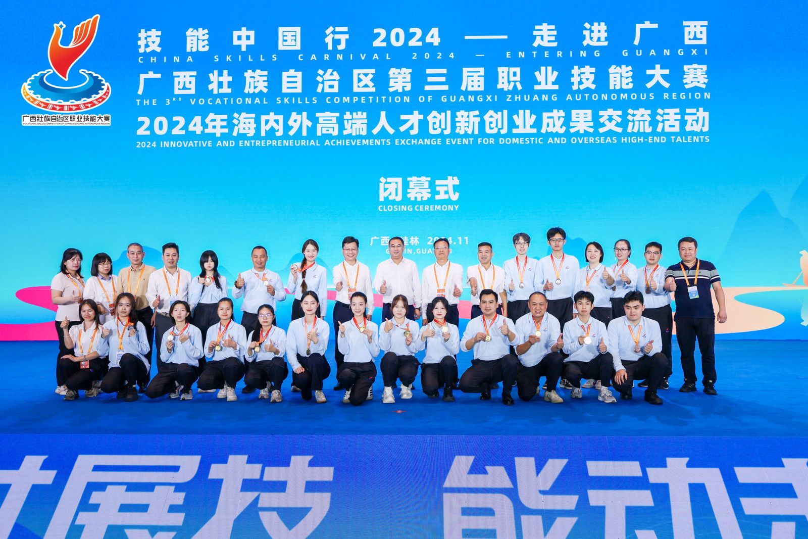 11月11日下午,“技能中国行2024—走进广西”、广西壮族自治区第三届职业技能大赛和2024年海外高端人才创新创业成果交流活动于桂林国际会展中心圆满落幕。best365官网大学生艺术团街舞队37名学生受邀参演闭幕式演出节目...