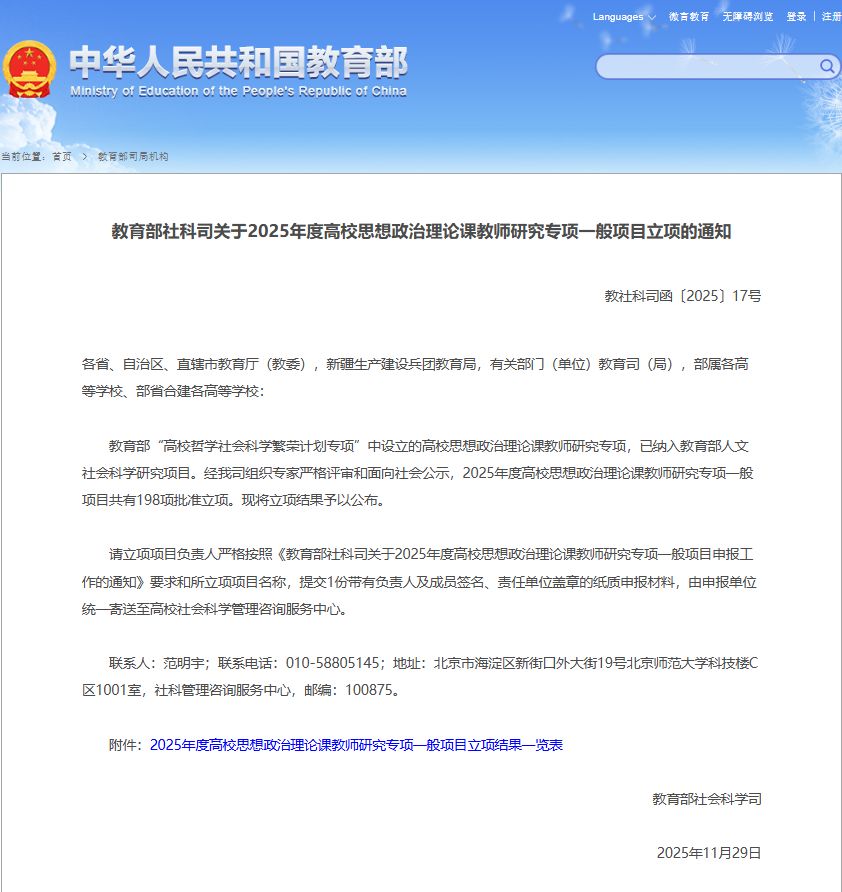 2025-12马克思主义学院获批教育部2025年度高校思想政治理论课教师研...