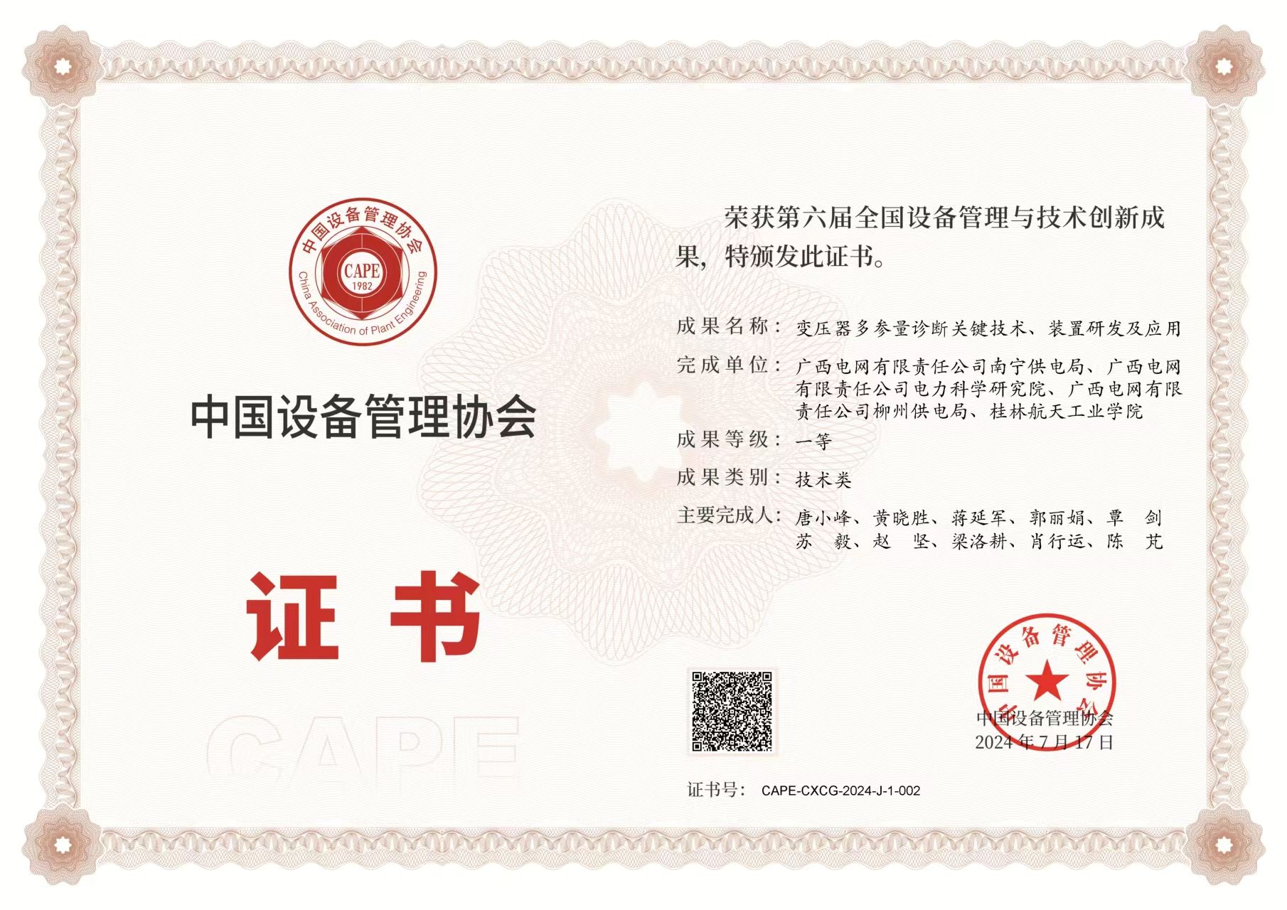 近日,由中国设备管理协会主办的以“深入推进创新实践,加快培育发展新质生产力”为主题的第六届全国设备管理与技术创新成果交流大会在陕西省西安市召开。best365官网储能电池智能传感与控制团队参与完成的项目《变压器...
