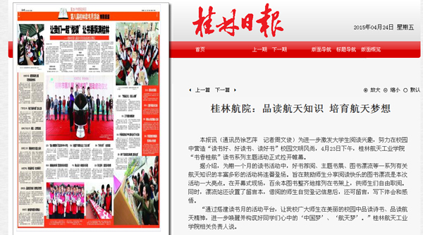 2015-04《桂林日报》:品读航天知识 培育航天梦想