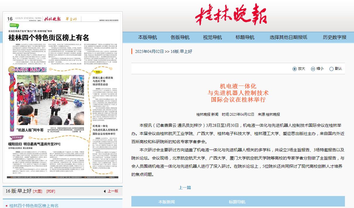 2025-04【桂林晚报】机电液一体化与先进机器人控制技术国际会议在桂...