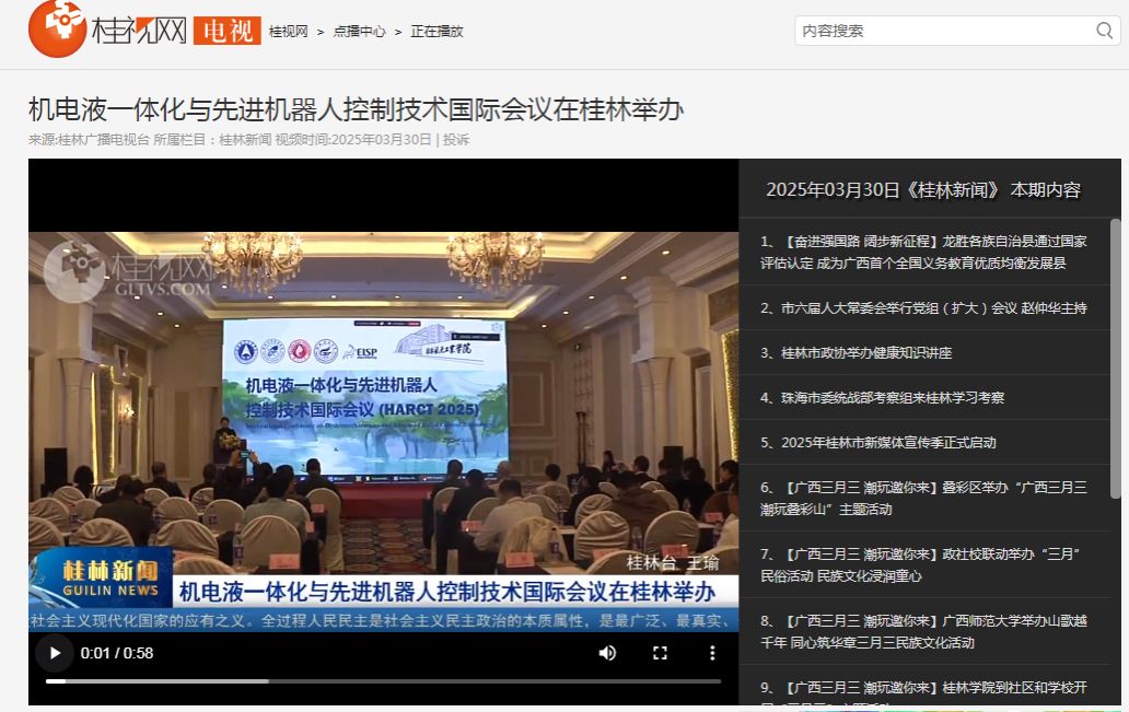 2025-04【桂林电视台】机电液一体化与先进机器人控制技术国际会议在...