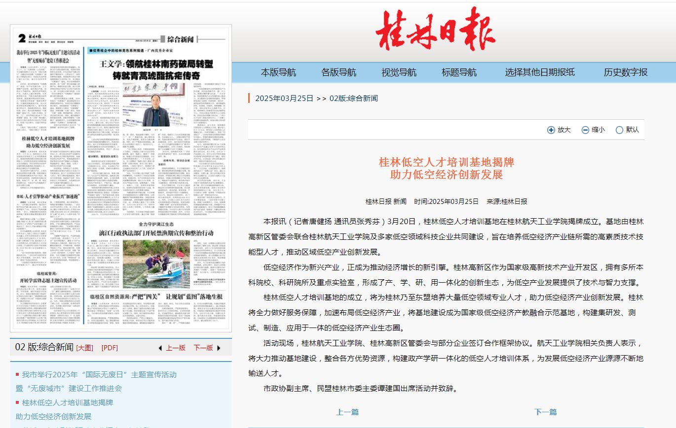 2025-03【桂林日报】桂林低空人才培训基地揭牌助力低空经济创新发展