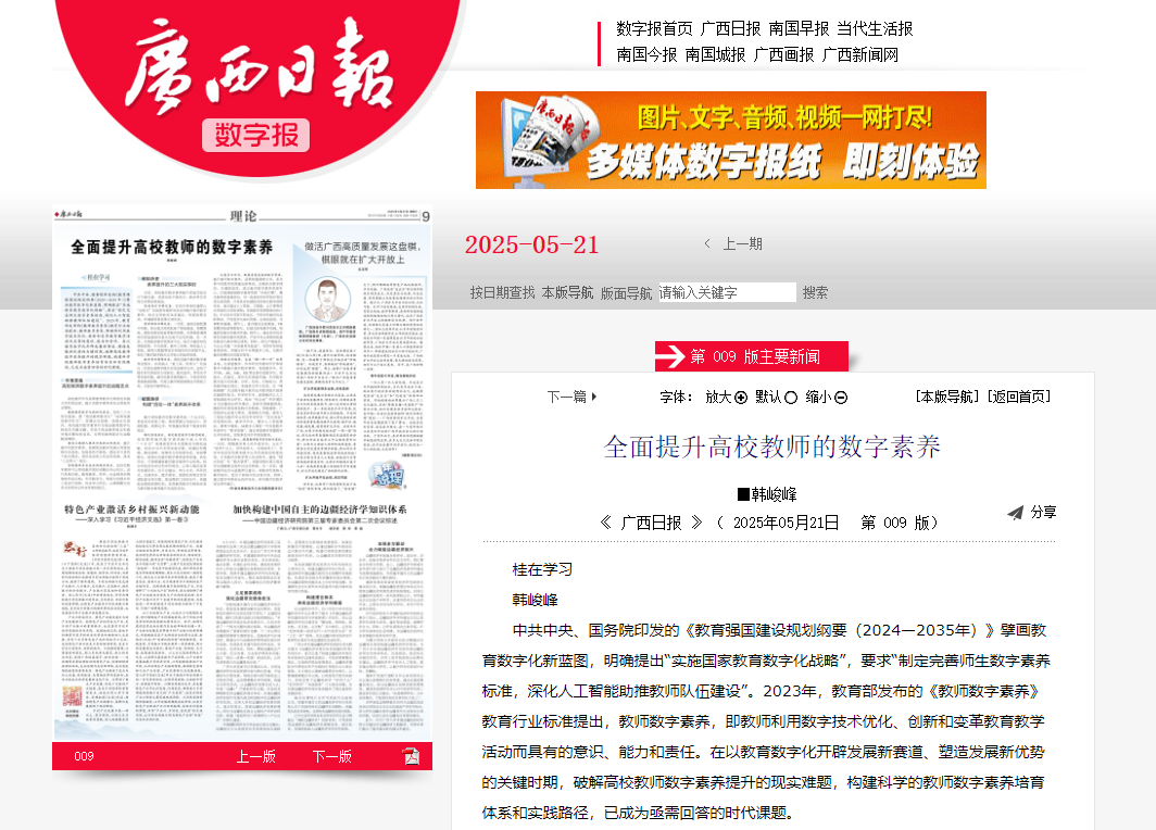 2025-05广西日报发表韩峻峰书记理论文章:《全面提升高校教师的数字...
