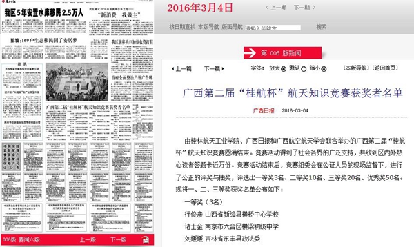 2016-03【广西日报】广西第二届“桂航杯”航天知识竞赛获奖名单