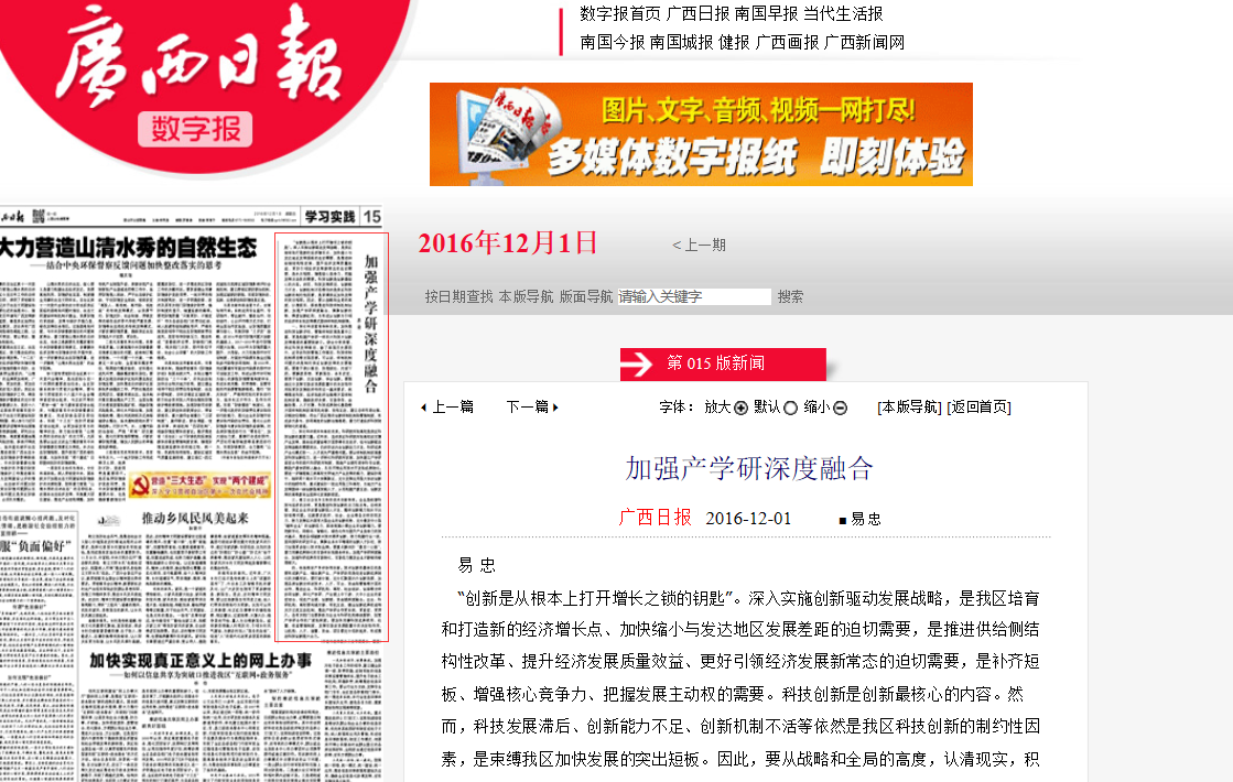 2016-12【广西日报.理论版】易忠:加强产学研深度融合