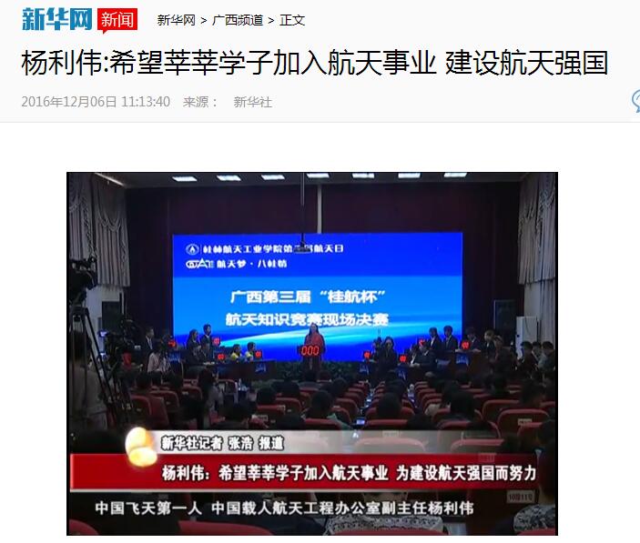 2016-12【新华网】杨利伟:希望莘莘学子加入航天事业 建设航天强国