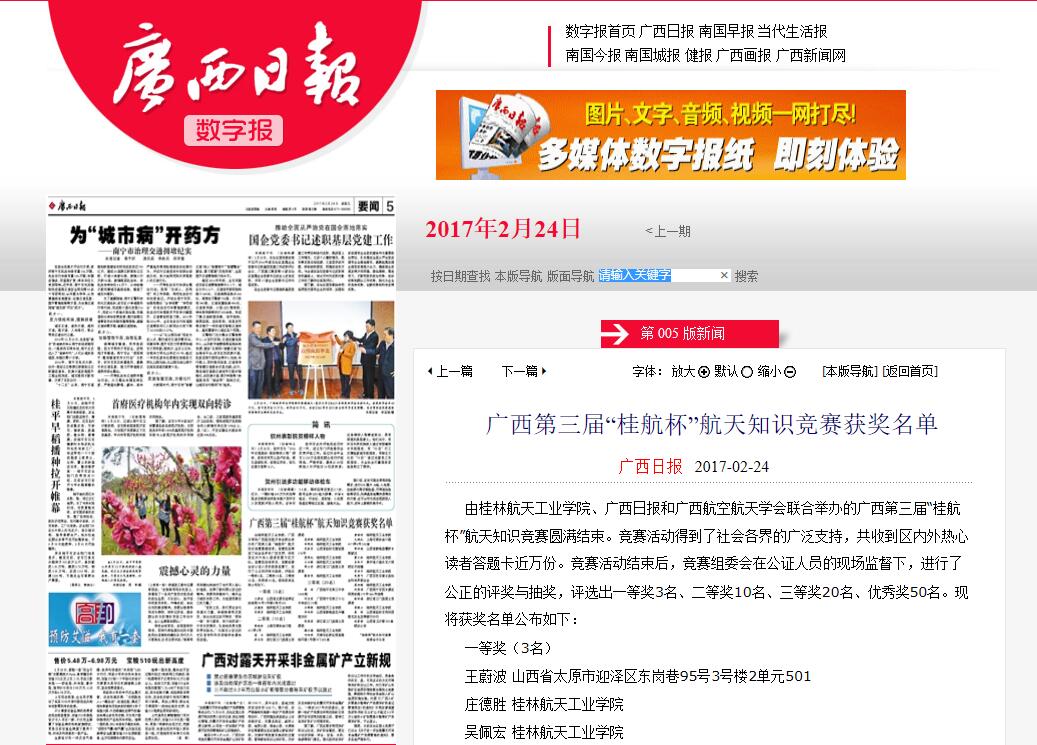 2017-02【广西日报】广西第三届“桂航杯”航天知识竞赛获奖名单