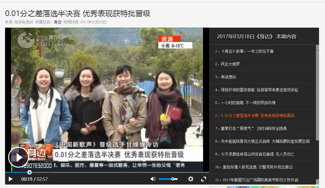 2017-03【桂林电视台】best365官网大学生晋级《中国新歌声》桂林赛区半决赛