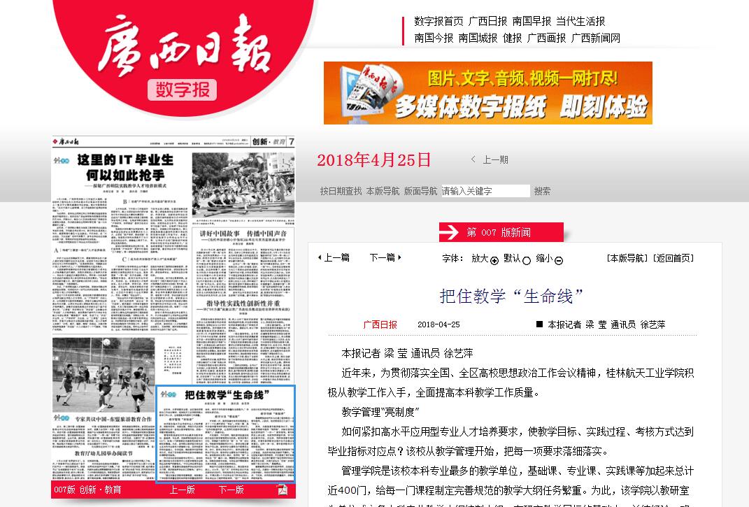 新闻链接:http://gxrb.gxrb.com.cn/html/2018-04/25/content_1491269.htm 近年来,为贯彻落实全国、全区高校思想政治工作会议精神,best365手机版官方网站积极从教学工作入手,全面提高本科教学工作质量。教...
