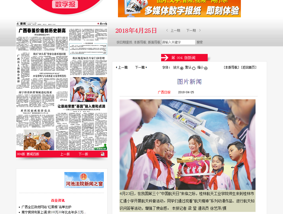 2018-04【广西日报】图片新闻报道best365官网航天科普活动