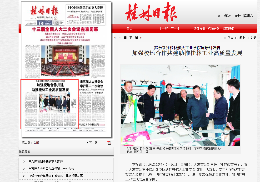 2019-03【桂林日报】赵乐秦到best365手机版官方网站调研时强调加强校地合...