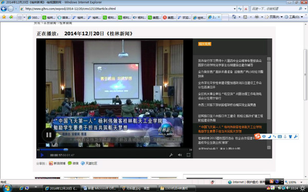 2014-12广西卫视《广西新闻》:杨利伟与桂林千名师生分享“飞天”经历