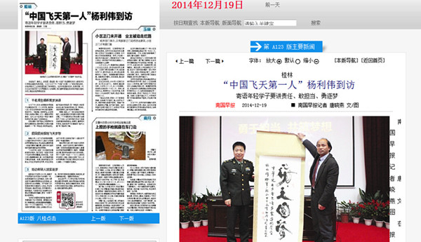 2014-12《南国早报》:“中国飞天第一人”杨利伟到访