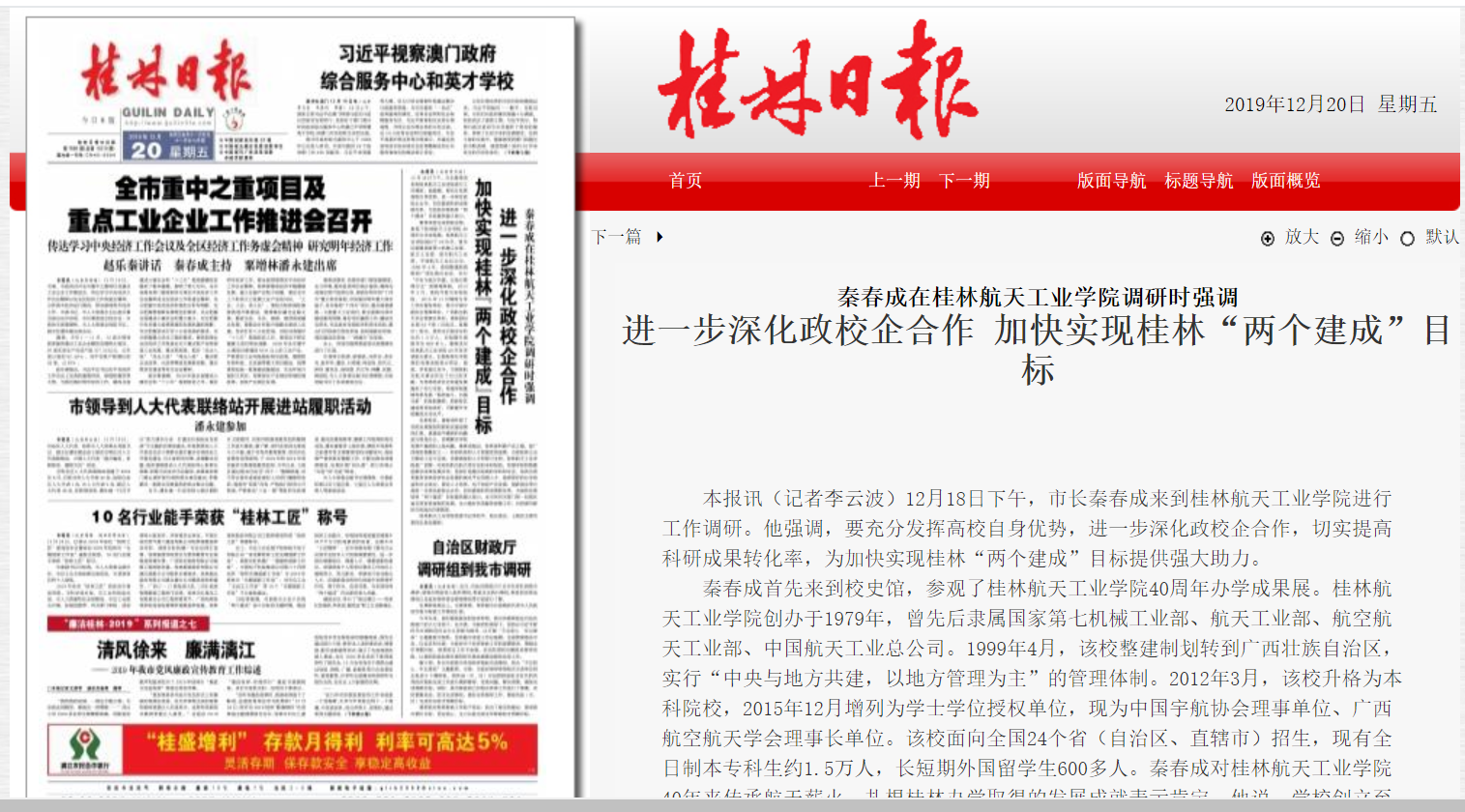 2019-12【桂林日报】进一步深化政校企合作 加快实现桂林“两个建成”...
