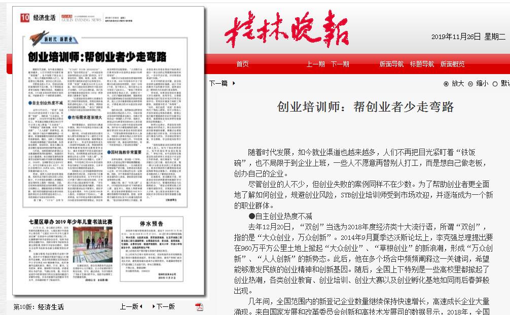 2019-11【桂林晚报】创业培训师:帮创业者少走弯路