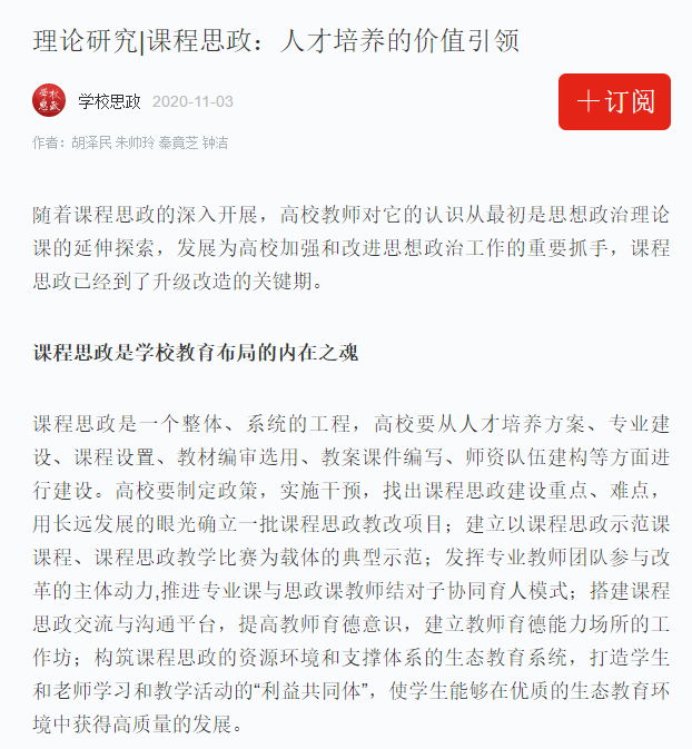 2020-11【学习强国】理论研究|课程思政:人才培养的价值引领