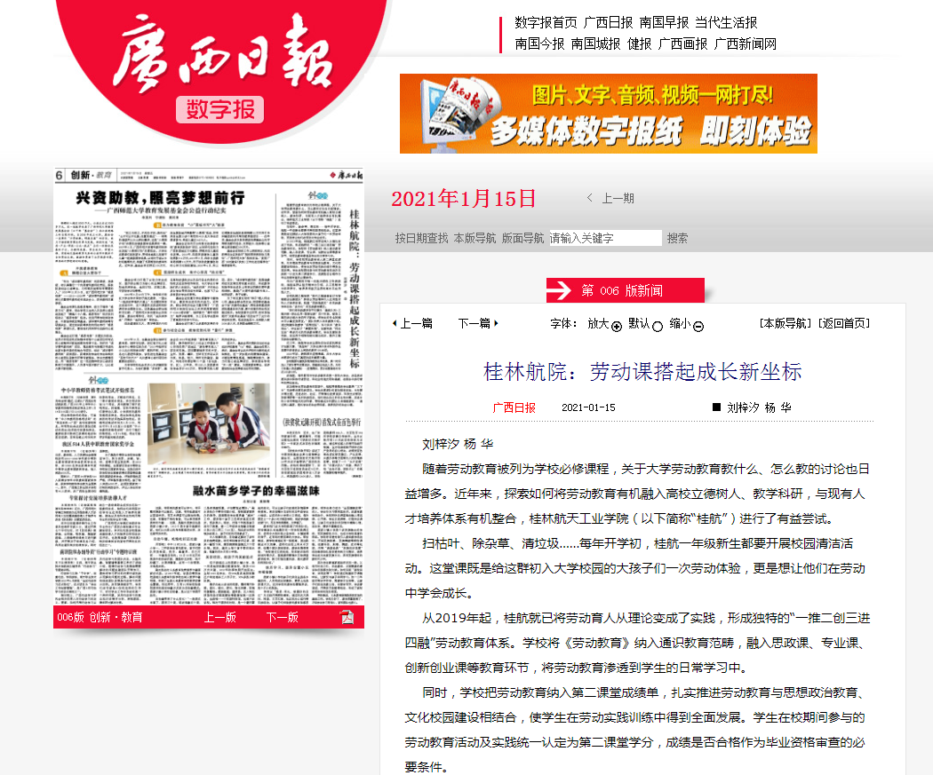 2021-01【广西日报】桂林航院:劳动课搭起成长新坐标