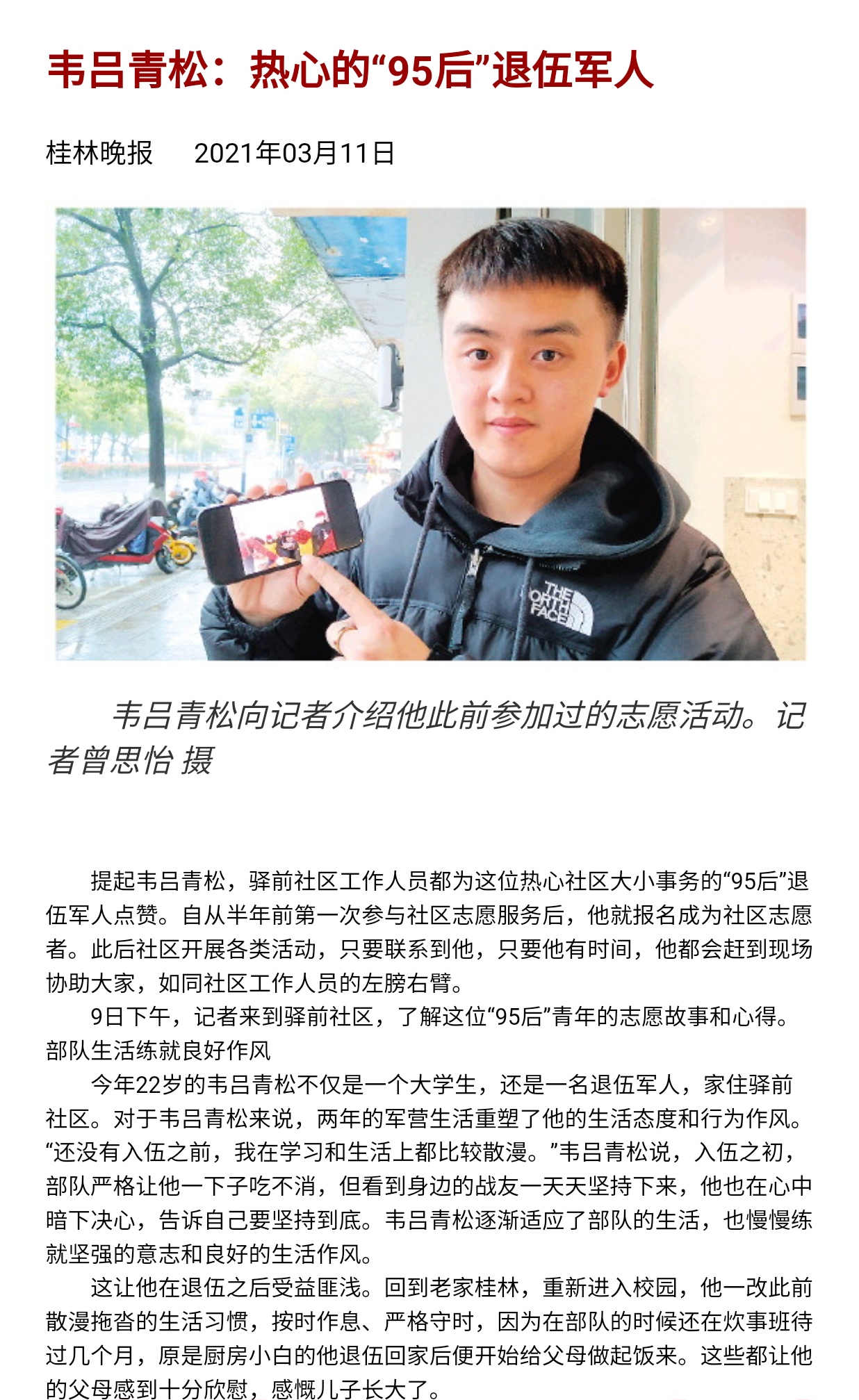 2021-03【桂林晚报】韦吕青松:热心的“95后"退伍军人