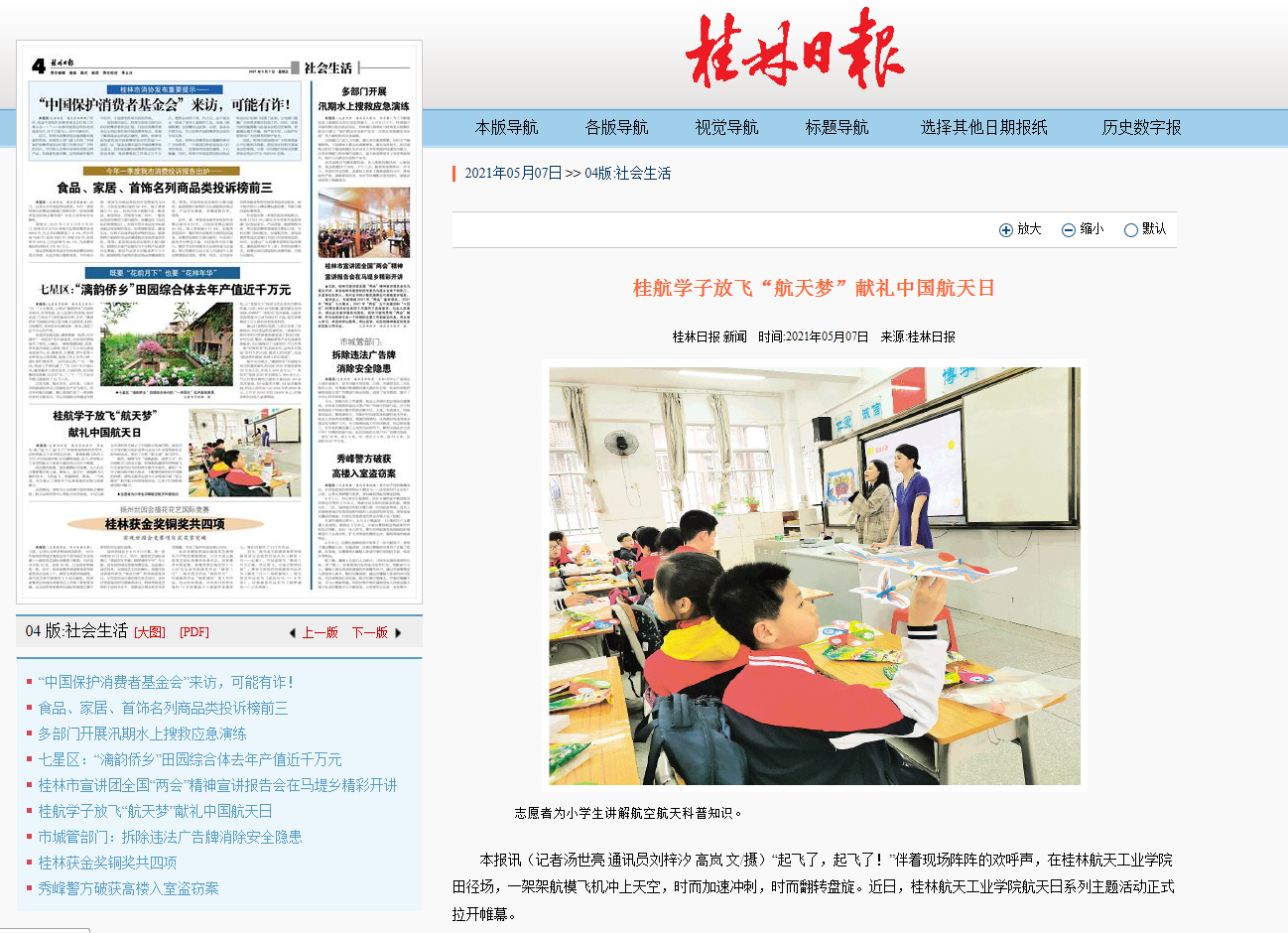 2021-05【桂林日报】桂航学子放飞“航天梦”献礼中国航天日