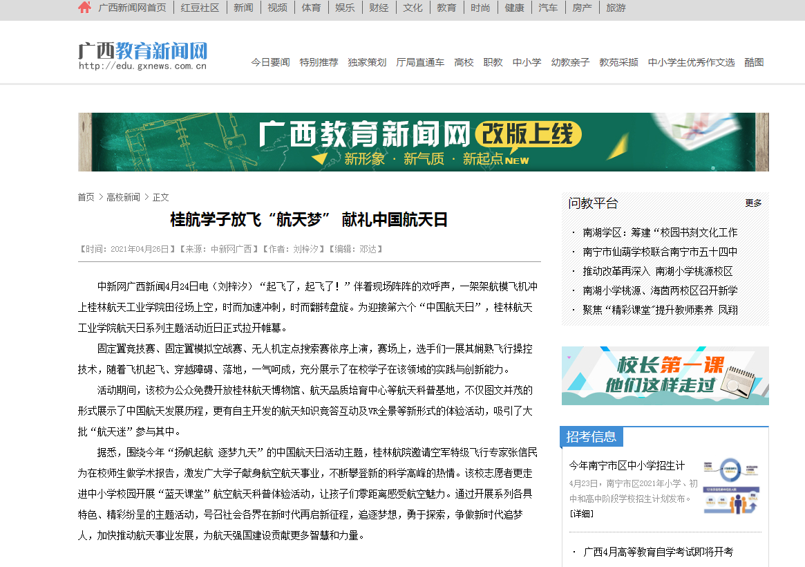 2021-05【广西新闻网】桂航学子放飞“航天梦” 献礼中国航天日