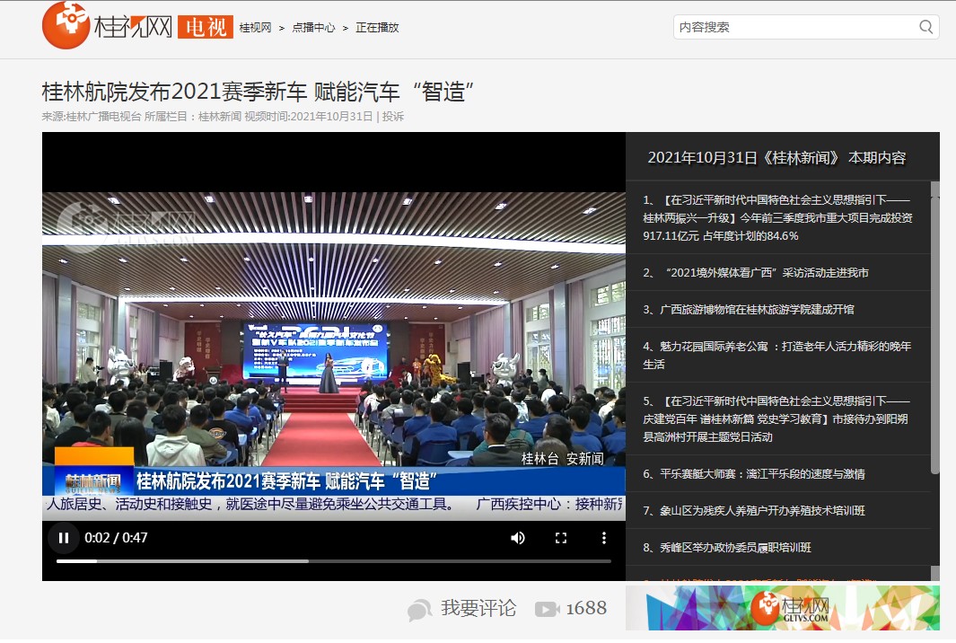 2021-11【桂林电视台】桂林航院发布2021赛季新车 赋能汽车“智造”