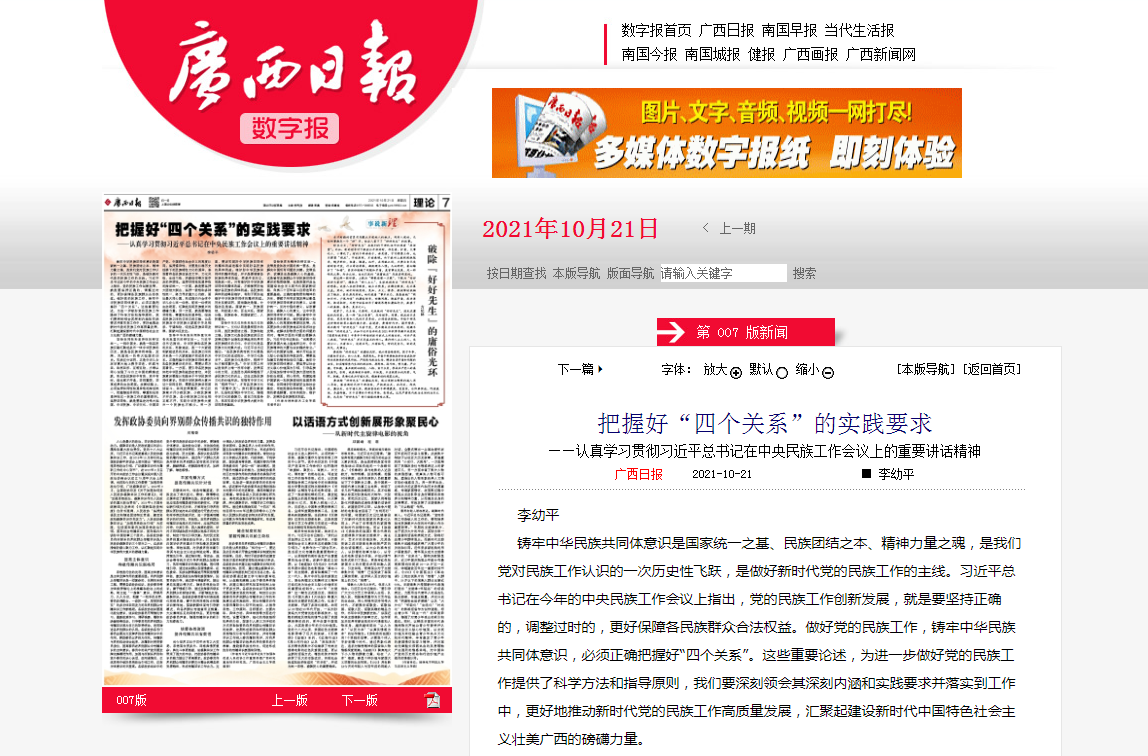 2021-10【广西日报】理论版头条刊发李幼平书记文章:把握好“四个关...