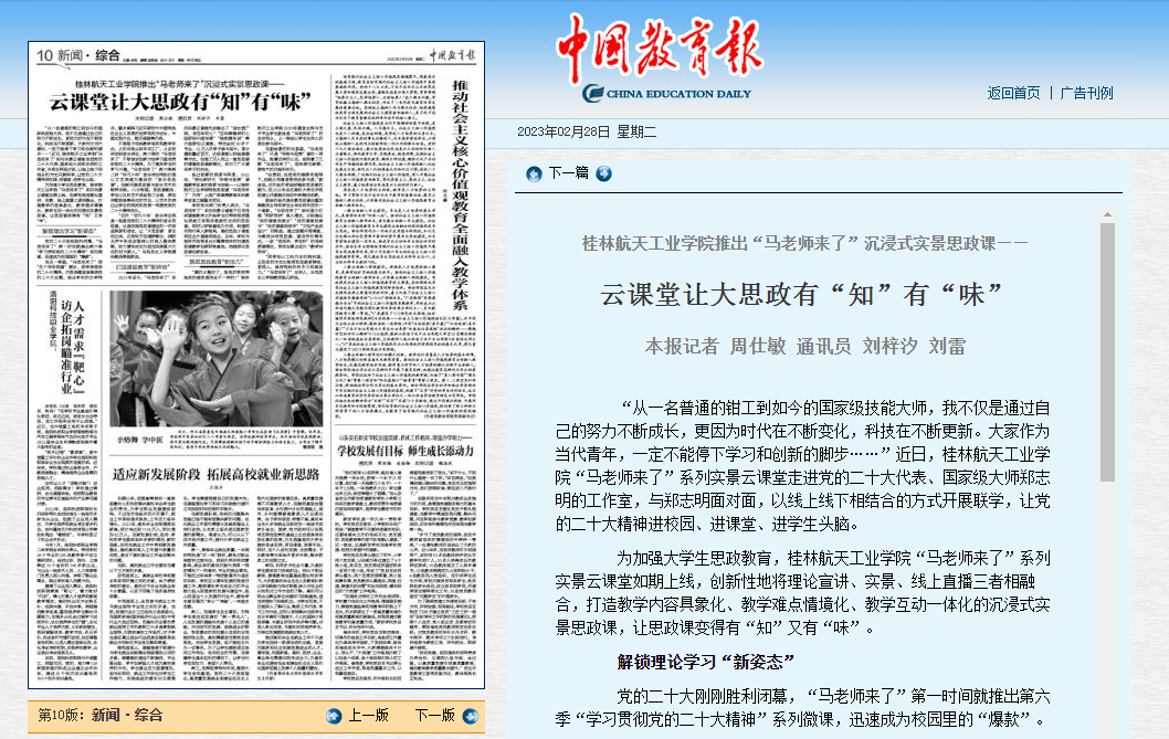 2023-02【中国教育新闻网】云课堂让大思政有“知”有“味”——桂林...