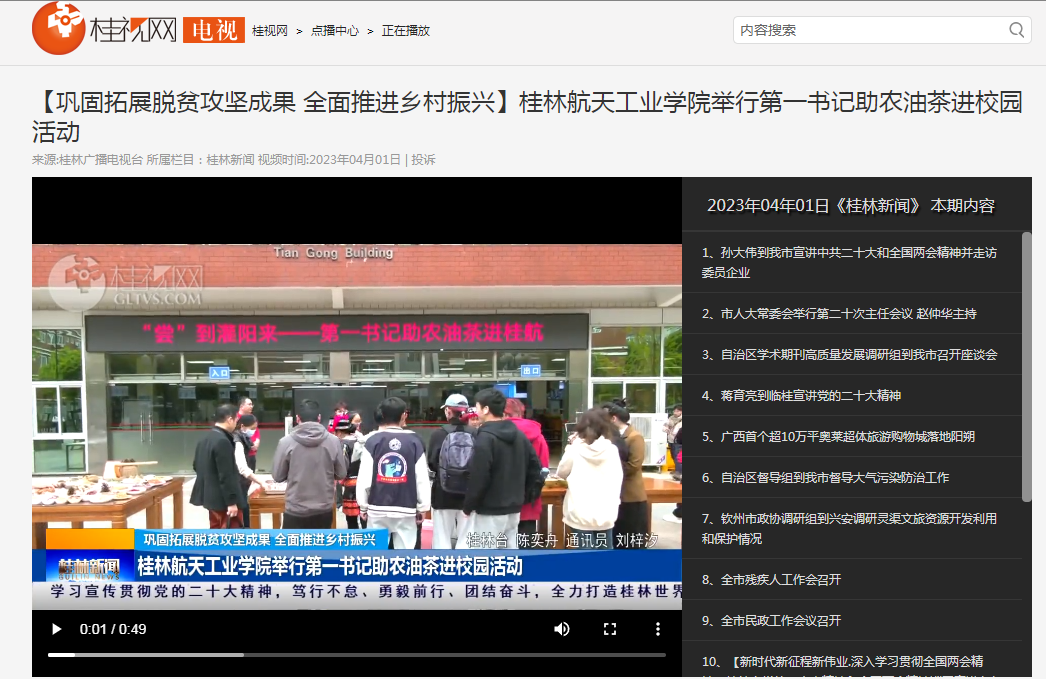 2023-04【桂林电视台】best365手机版官方网站举行第一书记助农油茶进校园活动