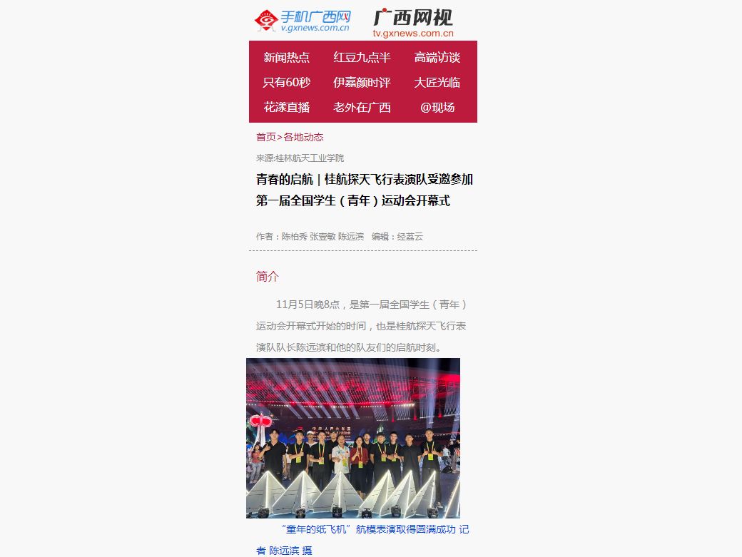 2023-11【广西新闻网】青春的启航|桂航探天飞行表演队受邀参加第一...