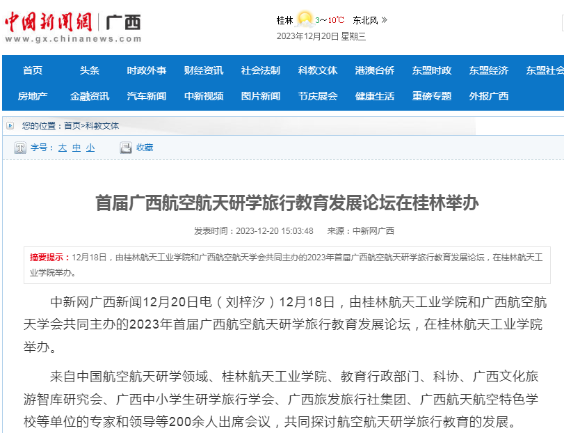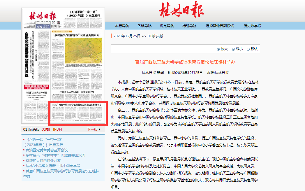 2023-12【桂林日报】首届广西航空航天研学旅行教育发展论坛在桂林举办