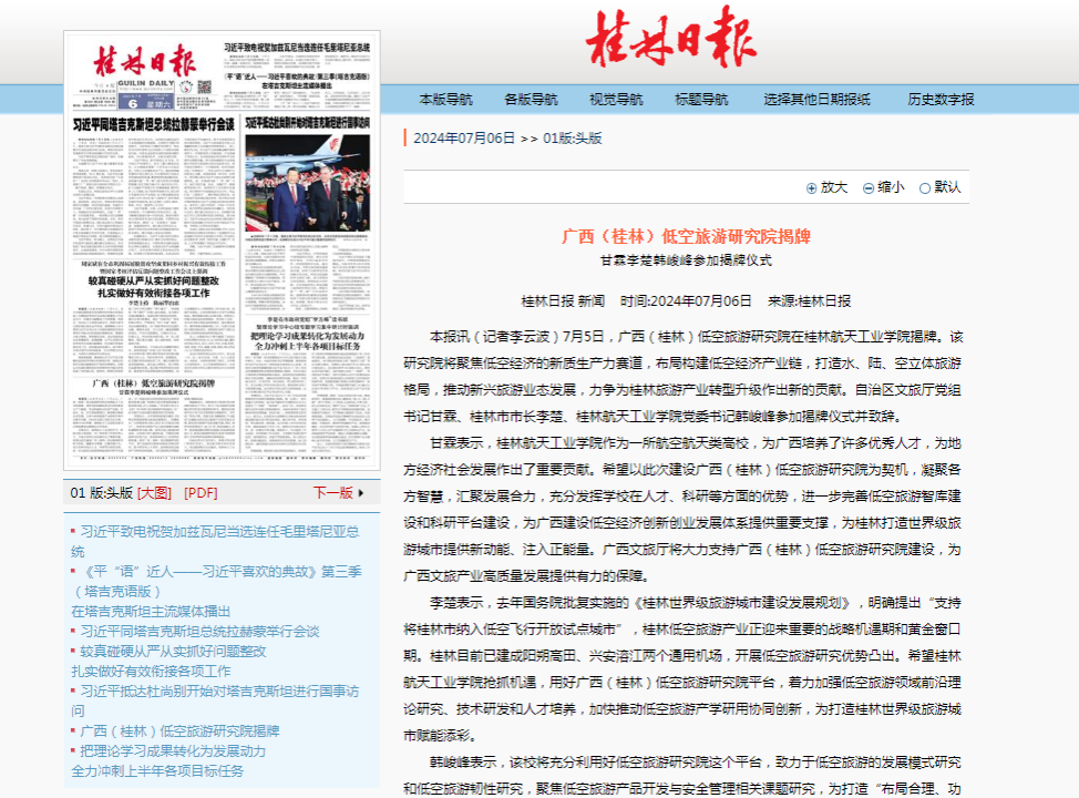 2024-07【桂林日报】广西(桂林)低空旅游研究院揭牌