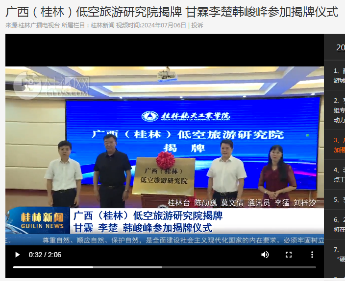 2024-07【桂林电视台】广西(桂林)低空旅游研究院揭牌