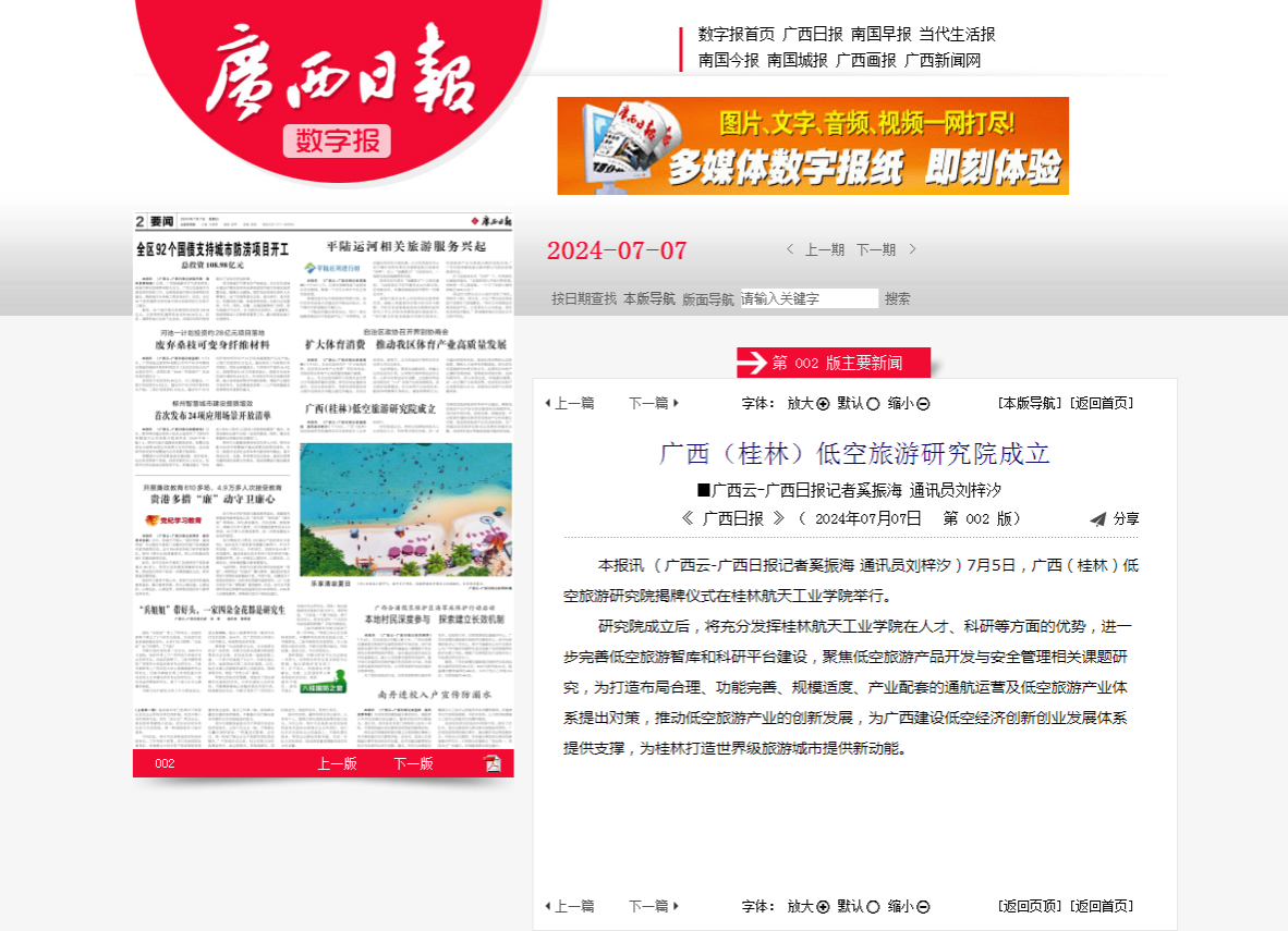 2024-07【广西日报】广西(桂林)低空旅游研究院成立