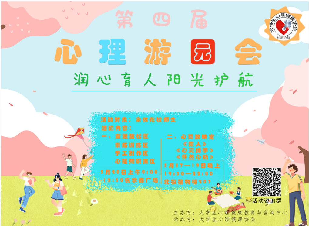 活动简介在5·25大学生心理健康日即将到来之际,组织开展第四届大学生心理游园会,活动共有5大模块12种体验类游戏,通过这一系列有趣、生动的体验性活动,帮助学生宣泄、放松情绪,营造良好、和谐的校园氛围,助力...
