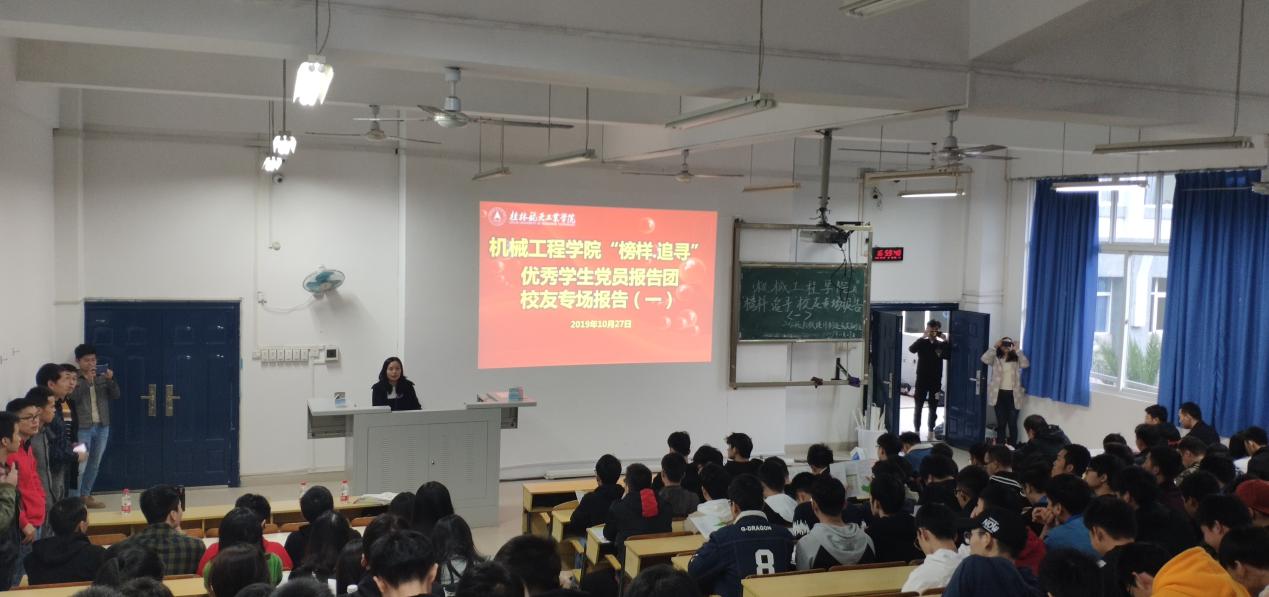为充分发挥优秀校友示范引领作用,营造良好的的学风校风。10月27日下午,机械工程学院在明志楼223教室,举办“榜样、追寻”优秀学生党员报告团校友专场报告会。韦俊生、周国王、蒙煜亮、黄增威四位优秀校友做报...