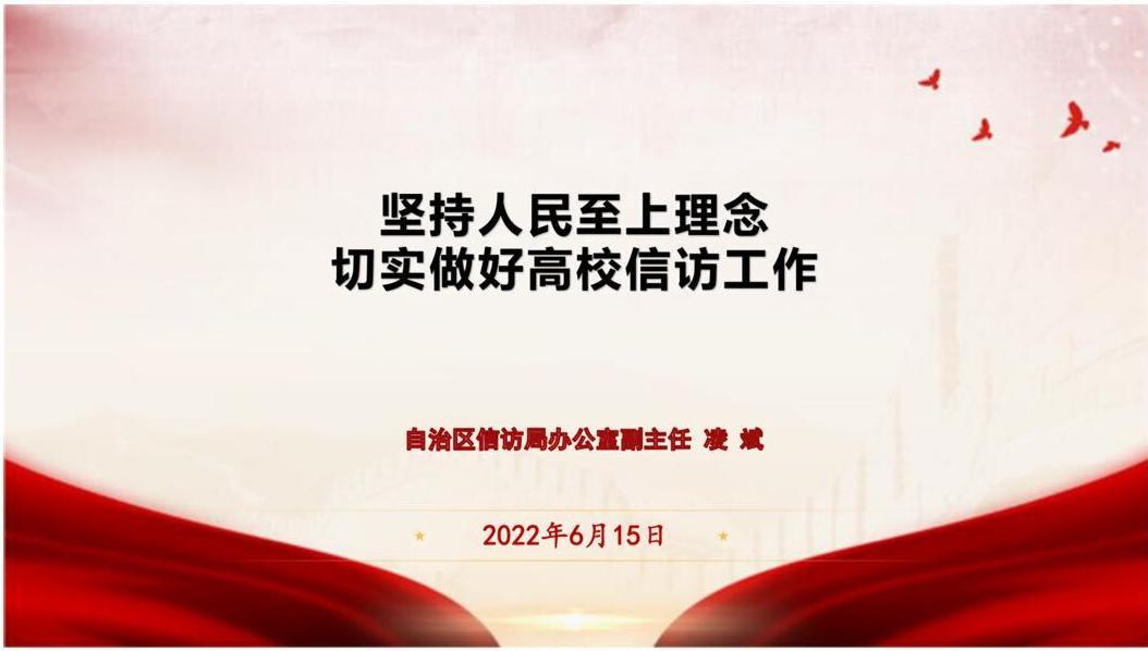 为深入学习贯彻习近平总书记关于加强和改进人民信访工作的重要思想,积极响应自治区教育厅办公室关于开展《信访工作条例》宣传月活动的决策部署,做好《条例》学习宣传和贯彻落实工作,6月15日,学校在南校区飞天...